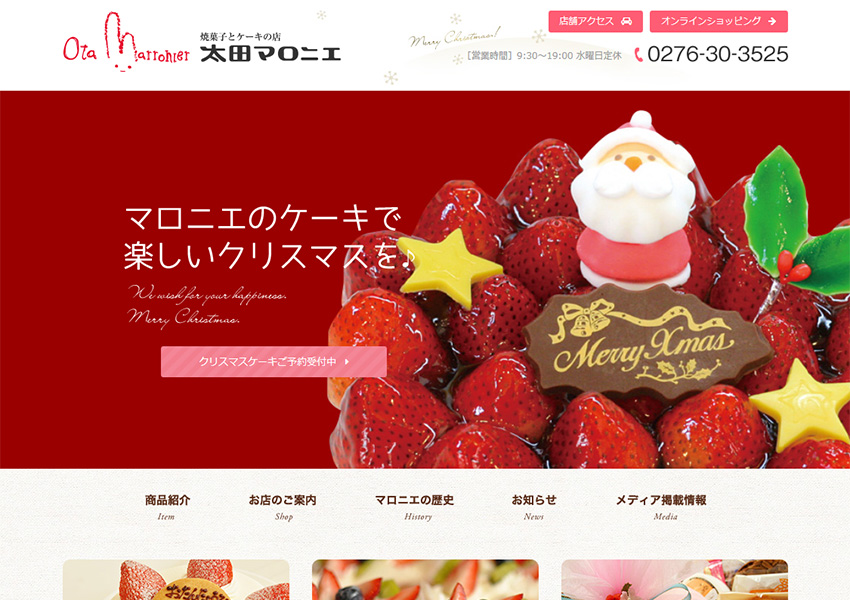CMS Coding Copy Design Direction Photography モバイル 施設・店舗サイト 食品・飲料 制作実績:太田マロニエ様 焼き菓子とケーキの店 太田マロニエ様 SITE:焼き菓子とケーキの店 太田マロニエAREA:群馬県太田市SERVICE:ケーキ・焼き菓子販売店