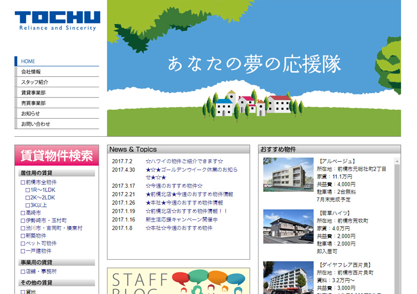 CMS Coding コーポレートサイト モバイル 住宅・建築・不動産 制作実績:株式会社トーチュー企画様 株式会社トーチュー企画様 SITE:株式会社トーチュー企画URL:https://to-chu.com/AREA:群馬県前橋市