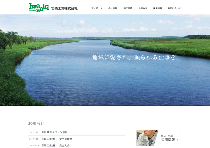 CMS Coding Design Direction Photography コーポレートサイト モバイル 建設・設備 制作実績:岩崎工業株式会社様 岩崎工業株式会社様 SITE:岩崎工業株式会社URL:https://iwasaki-kk.co.jp/AREA:群馬県太田市SERVICE: 総合建設業