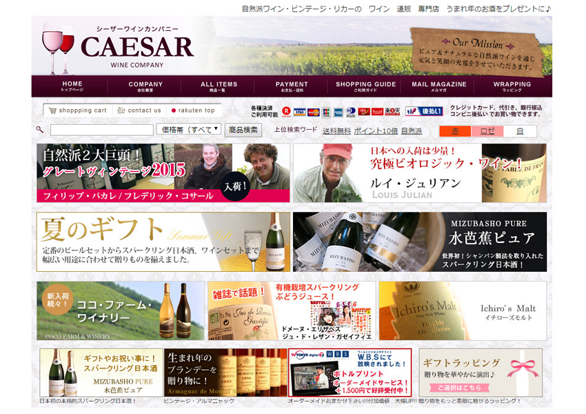 Coding Design EC ECサイト 食品・飲料 制作実績:リカーパークシーザー様 リカーパークシーザー様 SITE:リカーパークシーザーAREA:邑楽郡邑楽町SERVICE:自然派ワイン・ビンテージリカーなどのお酒の販売楽天市場、ECサイト